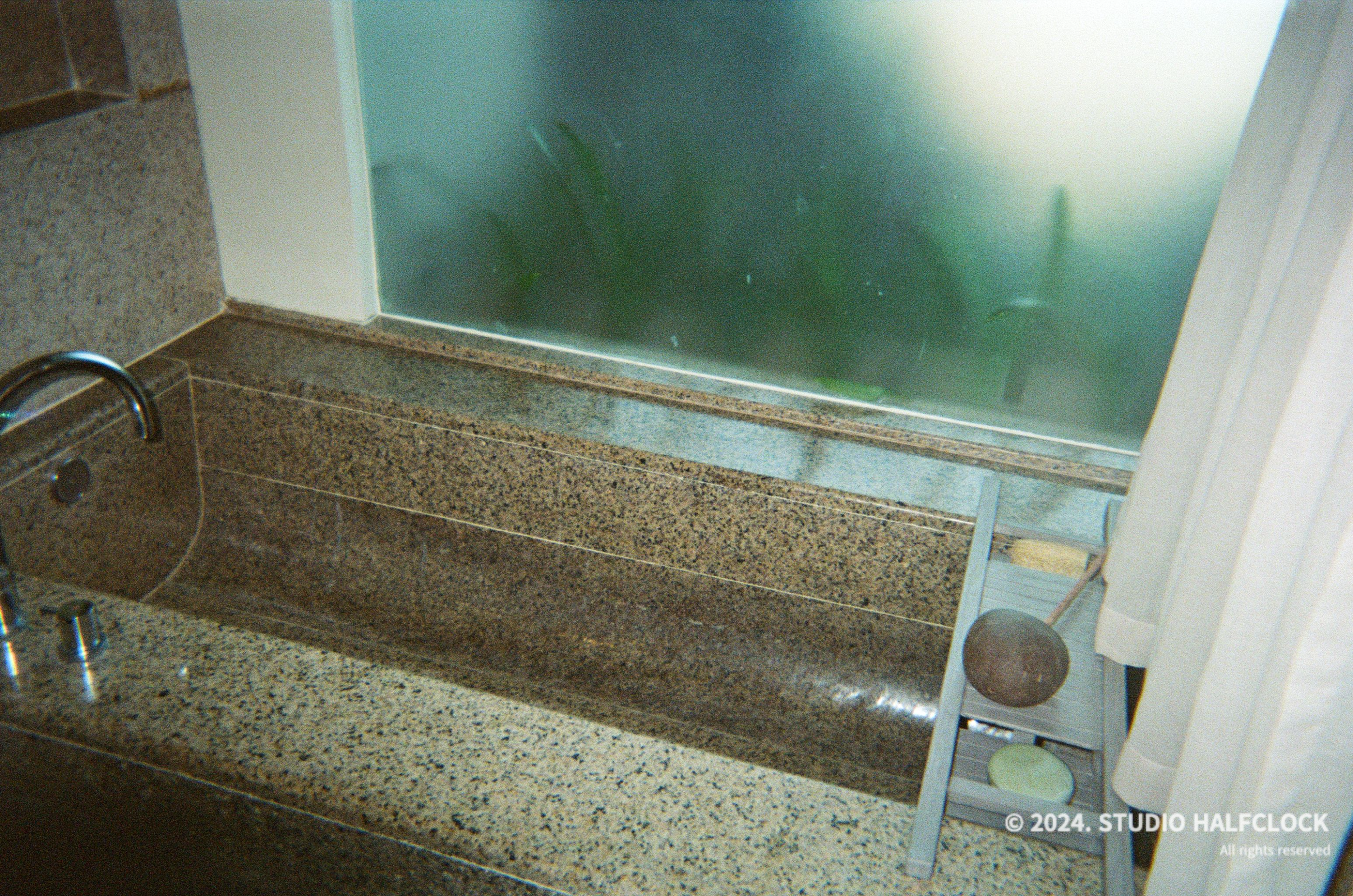 욕조가 이쁘길래 시험 삼아 찍어봤던 내부 사진.. 나름 플래시를 터뜨렸는데 살짝 어둡게 나오네요. 60년대 일본 욕조같이 나옴 어떤 느낌인지 아시죠?