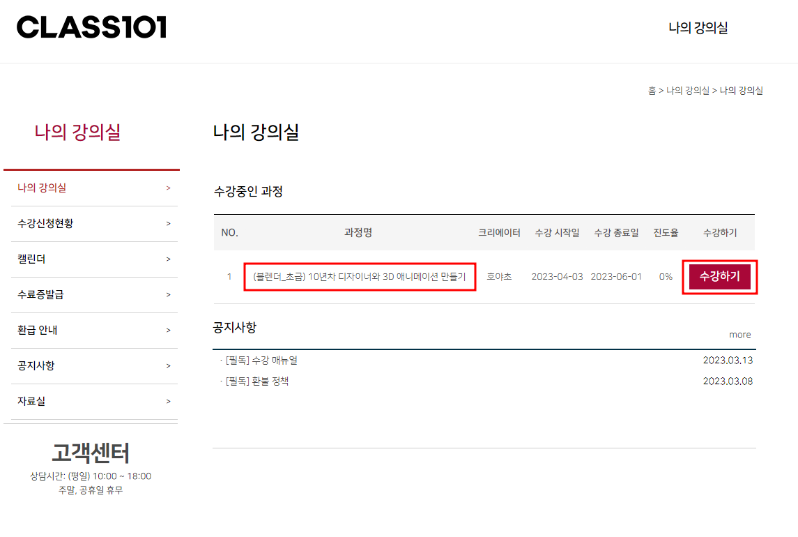 저는 블렌더 초급과정을 신청했습니다.