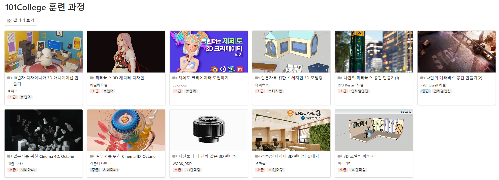 디지털 기초역량훈련이라서 주로 3D관련 수업이 많았습니다.