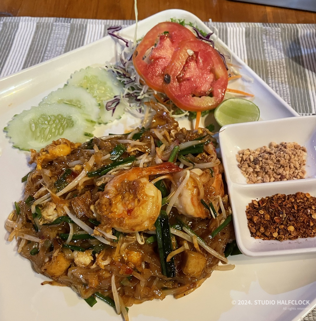 배고파서 허겁지겁 먹느라 새우 팟타이 사진밖에 못 찍음.. 호텔에서 먹는 거 치고 가격이 괜찮아서 맛있게 먹었습니다. 근데 음식이 다 조금씩 신맛이 있는데 태국음식이 좀 다 그런 것 같아요. 치킨 누들은 면이 진짜 부들부들한 면이라서 맛있었습니다.