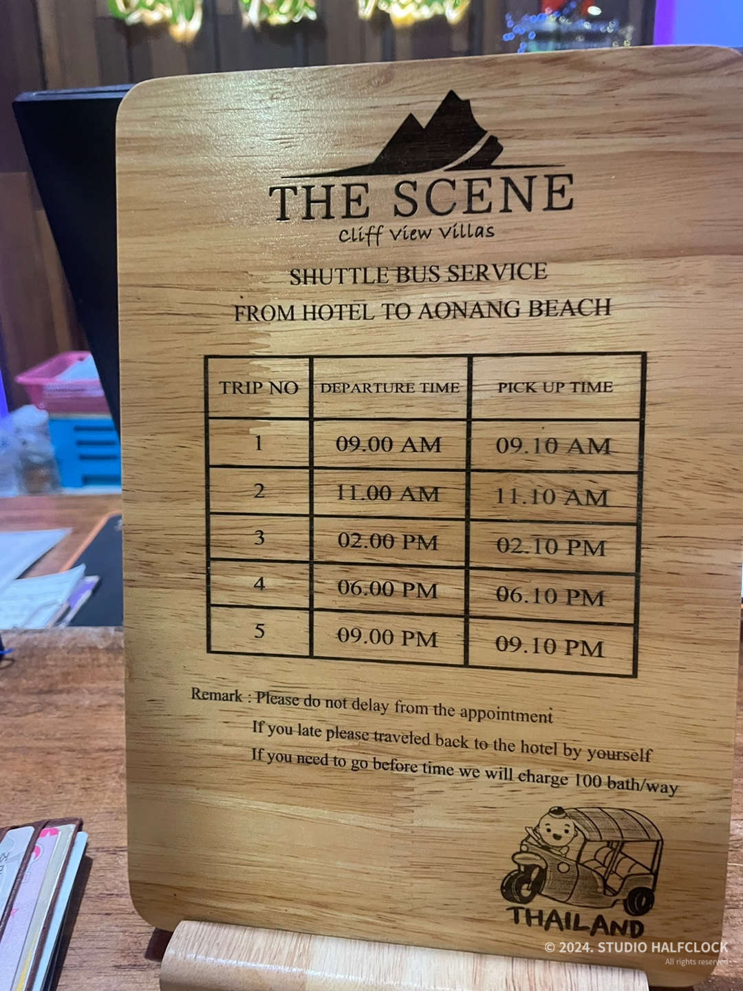 체크인하면서 아오낭 해변까지 가는 무료 셔틀 시간 확인을 했는데 시간이 무슨 하루에 5번밖에 없었다. 오토바이 렌트를 원하면 돈 내고 이용가능하다. 이외에 세탁서비스가 있는데, 저는 끄라비 코인세탁방 이용했습니다.(한국 코인세탁방이랑 똑같고 깔끔했어요)