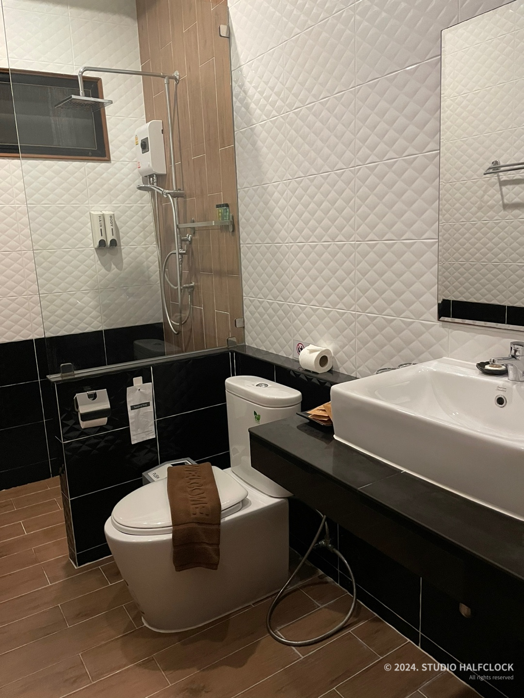 화장실도 깨끗한 편인데, 조금 아쉬운 게 있다면 수압이.. 진짜 졸졸졸.. 너무 약했어요. 온도조절도 불가능.. 아무튼 수영장이나 바다수영 때문에 씻을 일이 많았는데 수압이 약해서 불편했습니다. 거기다가 헤어드라이어 진짜 작아서 성능 안 좋으니 웬만하면 드라이기 챙겨 오세요..