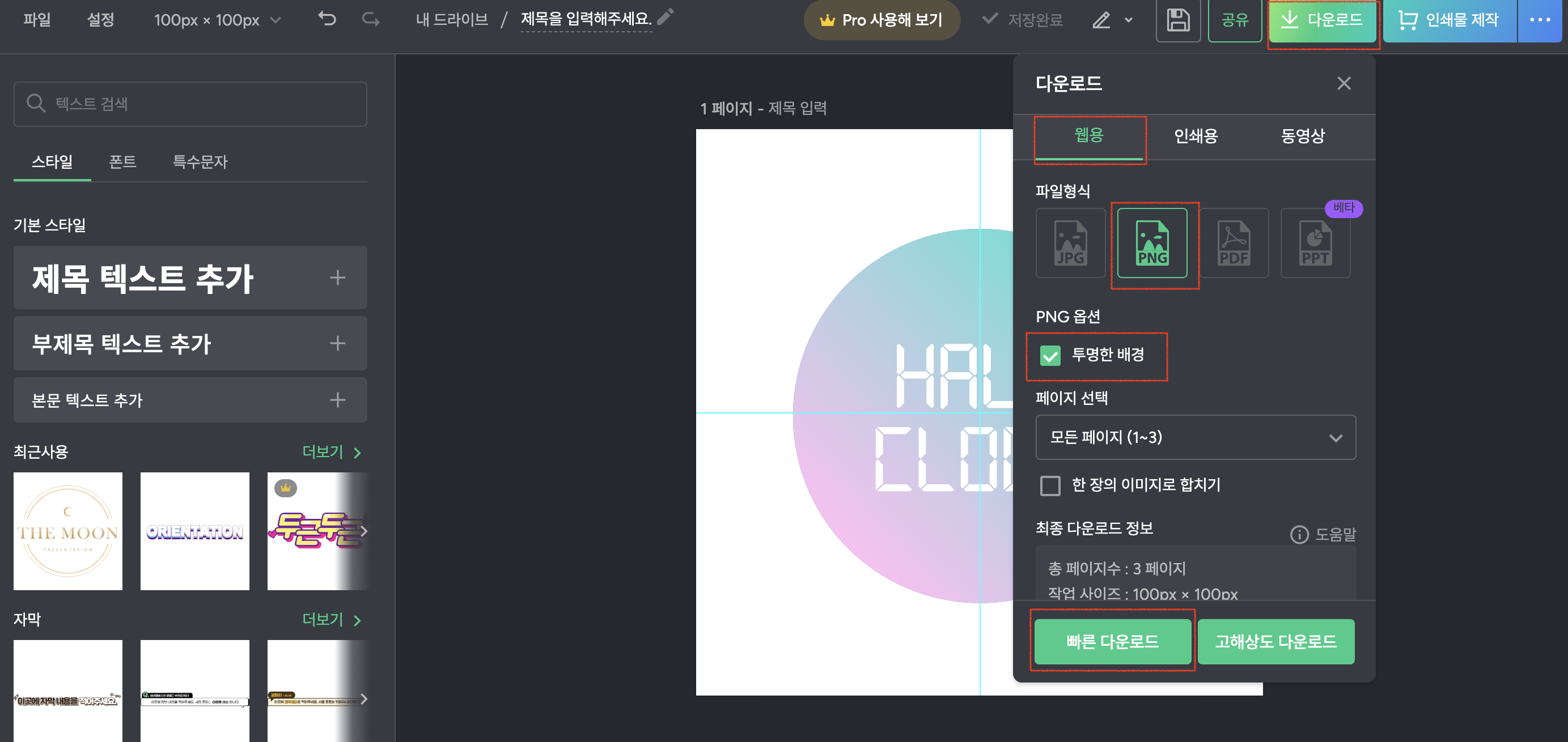 이렇게 디자인하고 PNG로 저장해 줍시다.