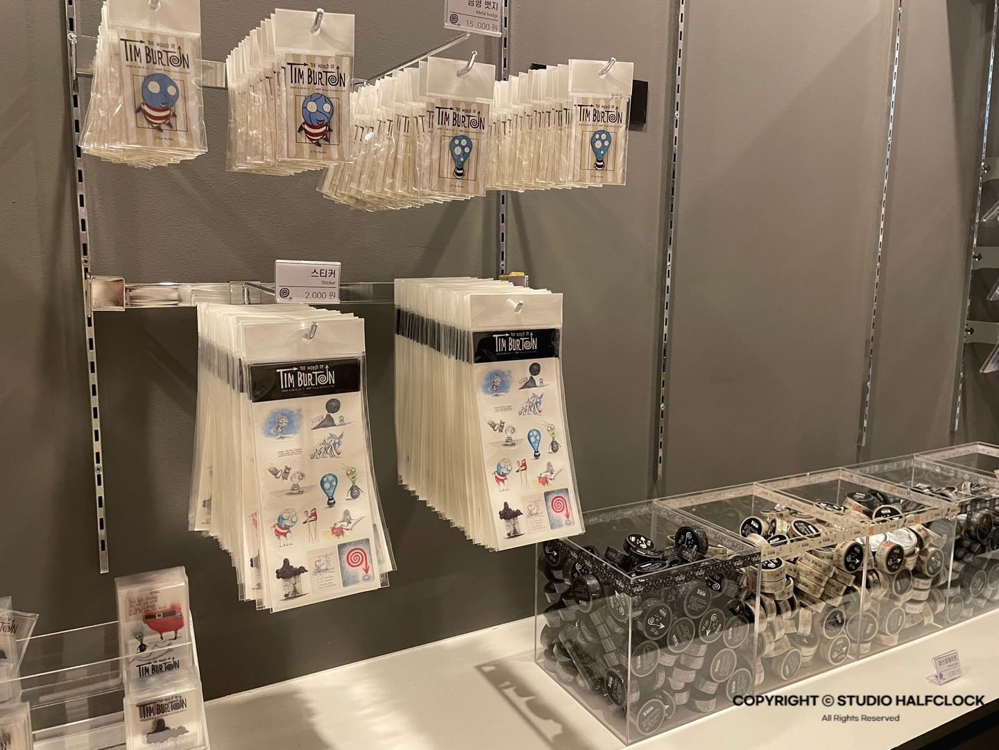사실 어느 전시에 가던, 굿즈샵에 들릴 때는 항상 가슴이 두근거리면서 지갑을 열게 된다. 이렇게 특별전시를 하면 또 팀 버튼이 언제 한국에 올 지도 모르는 것이 사실이고, 어릴 때부터 팀 버튼의 영화, 애니메이션을 좋아했기 때문에 이것저것 살려고 눈에 불을 켜고 보았는데 막상 별거 안 샀다. 엽서랑 자석 정도..?