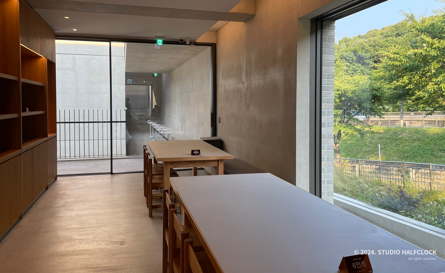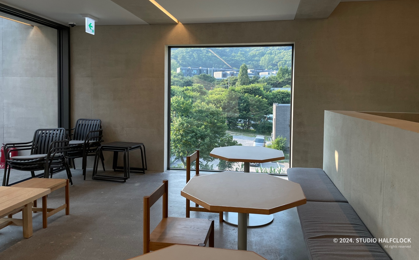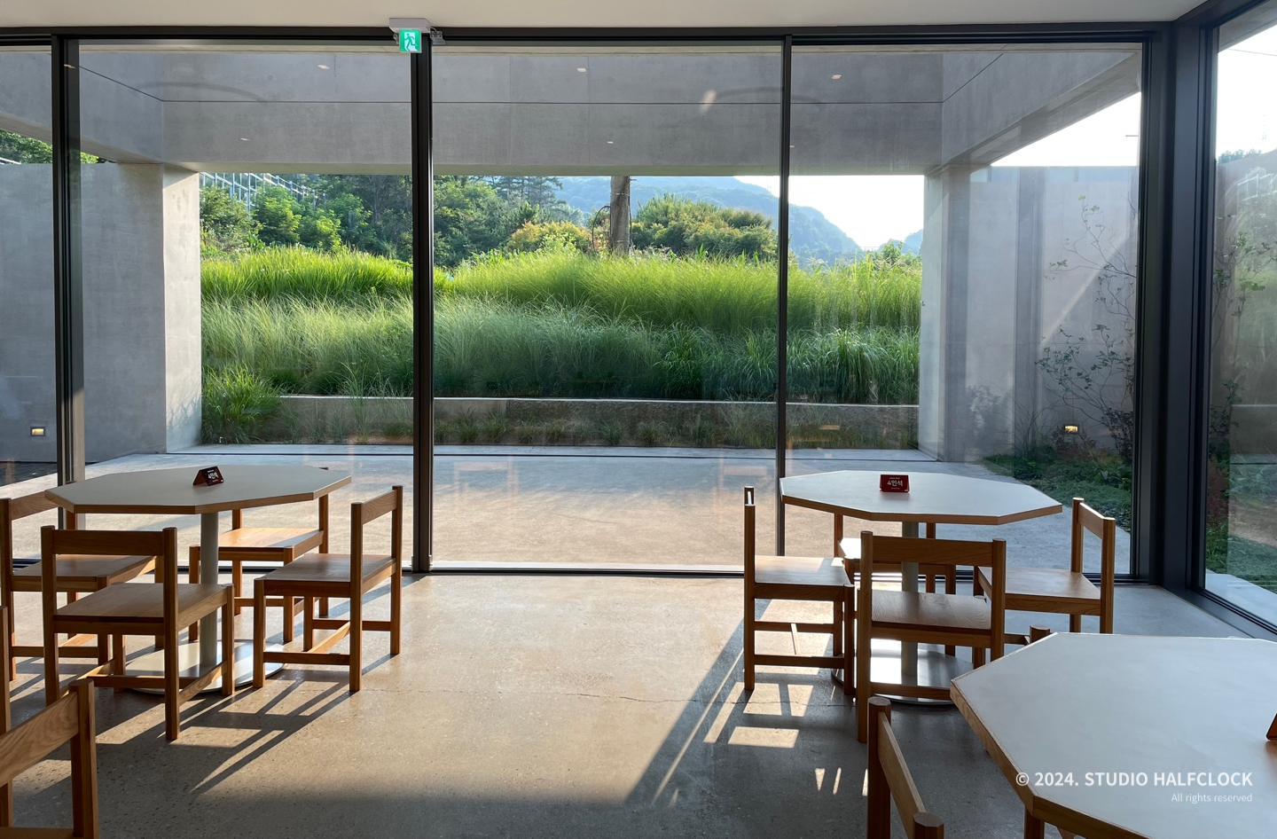 그림 같은 조경과 산 뷰, 너무 멋있지 않나요..? 전체가 통유리로 되어있어서 밖을 보기에 너무 좋았어요. 유리를.. 어떻게 관리하시는.. 지..? 대단한데요..?