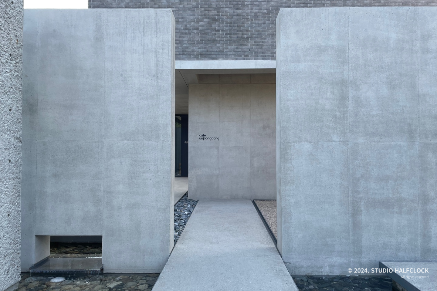 성남시 분당구, 운중동에 위치한 카페로 단독 건물형태로 되어있는 2층짜리 카페다. 여기는 건축이 예뻐서 가보게 되었는데, 노출 콘크리트와 물, 안도다다오 느낌의 건축이 정갈한 느낌으로 있었고 주변의 산과 잘 어우러졌다. 조용하게 머물다가 가기 좋은 카페로, 물멍 때리기 좋았습니다. 평일 방문했는데 주차 자리도 있고 붐비지 않아서 좋았어요. 주말에는 사람 많을 듯.. 알고 보니 24년도 2월에 오픈한 카페라고 하네요. 주변에 응달산과 성남도시자연공원 등 자연과 함께있는 느낌이 정말 좋았어요.