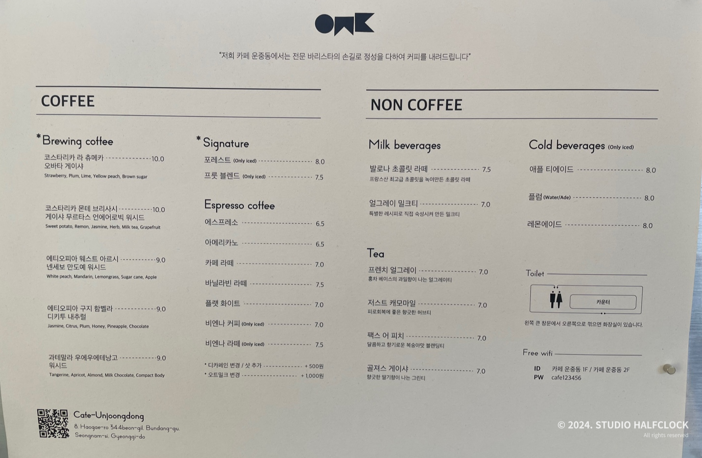 단체로도 가기에도 좋을 것 같은 카페 운중동! 뷰와 건축만 멋있는 게 아니라 커피도 정말 맛있으니 꼭 한번 가보세요!