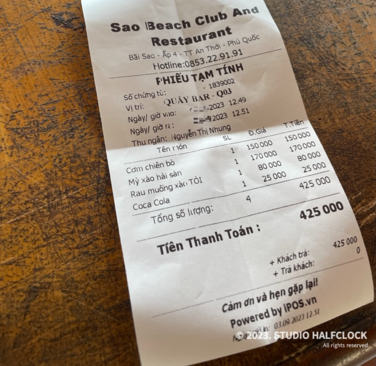 사오비치 근처에 생각보다 음식점이 없어서 구글맵으로 열심히 찾다가 겨우 찾아서 들어간 곳이다. 사오비치 주변이 좀 물가가 비싼 편인 것 같음. 근데 그렇다고 너무 비싸진 않으니까 부담은 없었어요. 볶음밥보다는 면이 맛있었고, 이쯤 되니 슬슬 베트남 음식이 질리기 시작.. 나중에는 버거 찾으러 다녔습니다. 아무튼 먹을만해요!