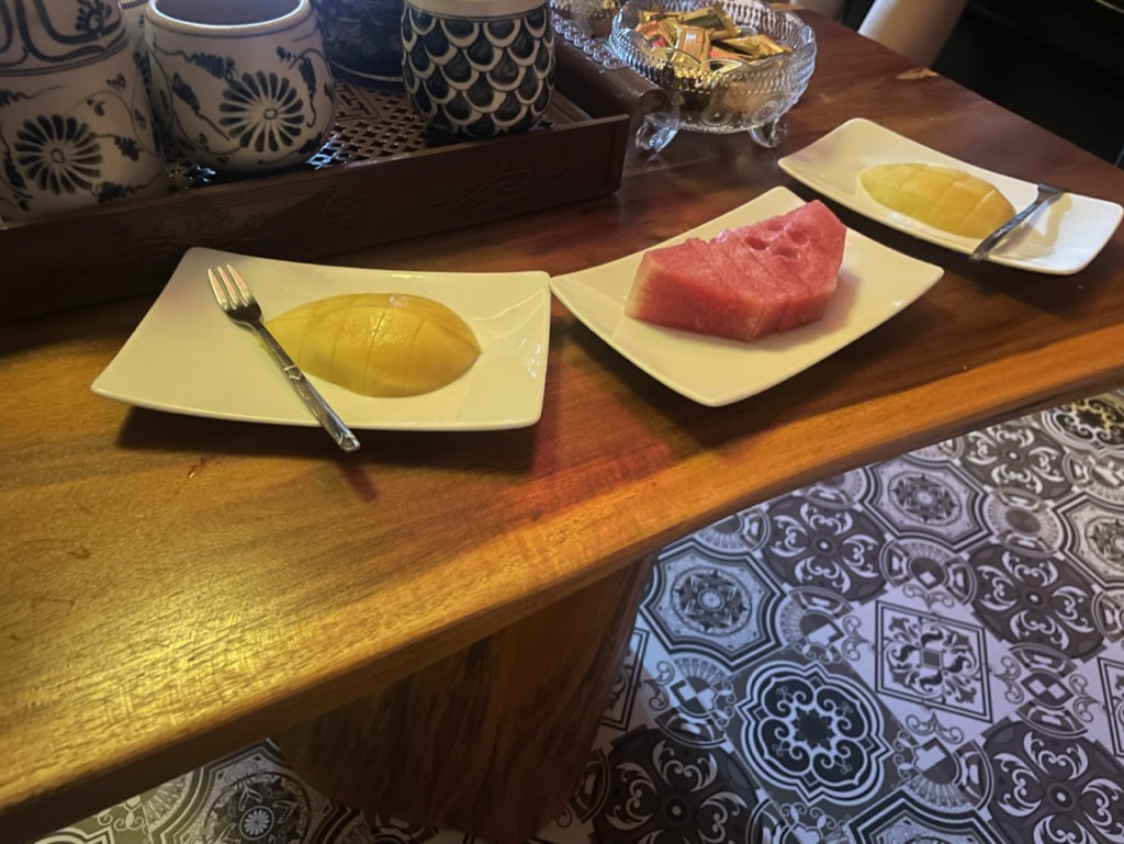 - 시킨 메뉴: Pasta with Tomato Sauce, Vegetarian Roasted Pork noodles, Phu Quoc Specialties, Guava Juice, Ice Tea