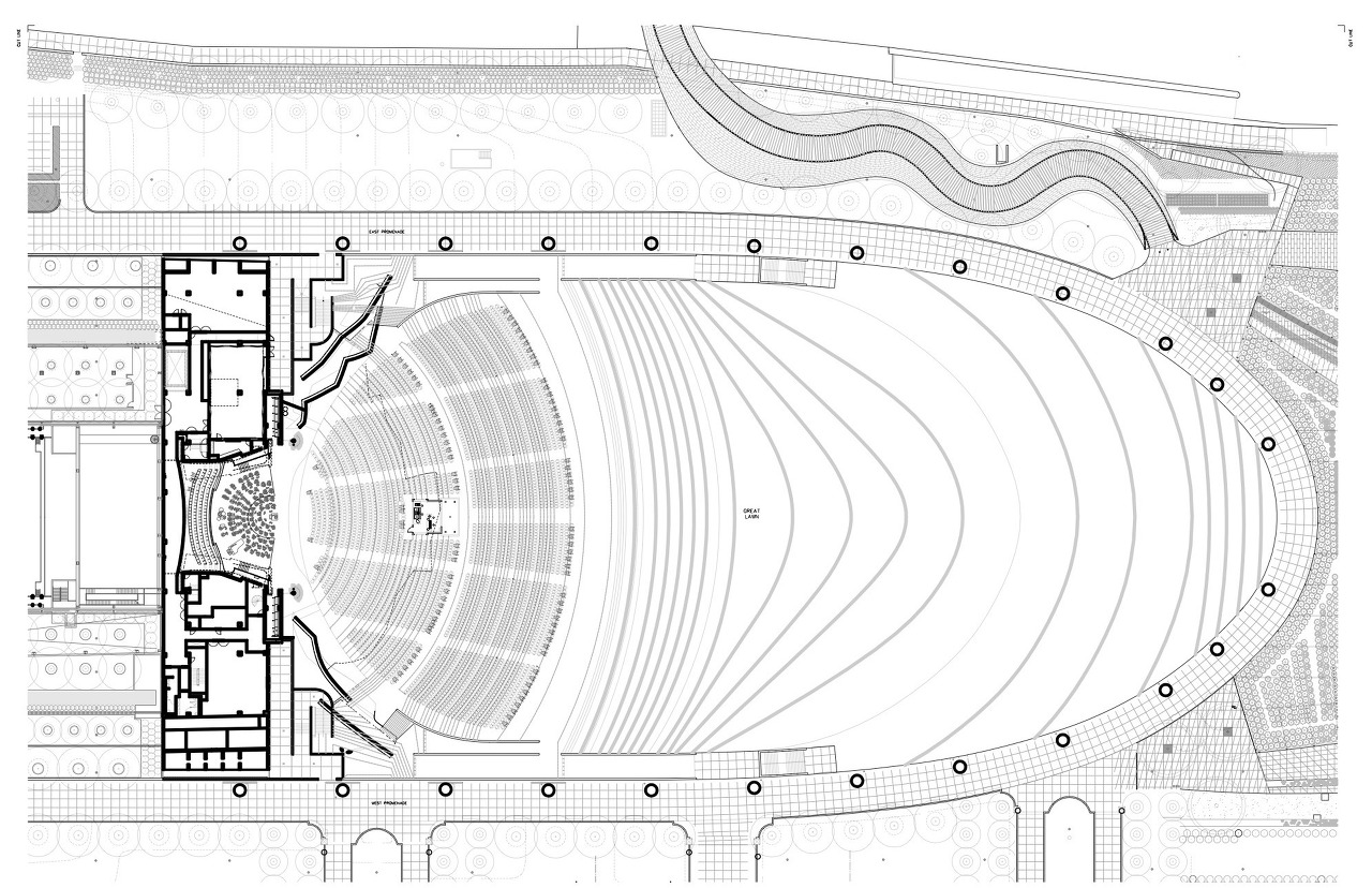 관객을 위한 좌석은 두 가지 구역으로 제공된다. 주요 좌석 구역은 고정 좌석에 최대 4,000명을 수용할 수 있으며, 파빌리온 바로 옆에 위치해 있다. 주요 좌석 구역 너머의 잔디밭에서 최대 7,000명을 수용할 수 있다.