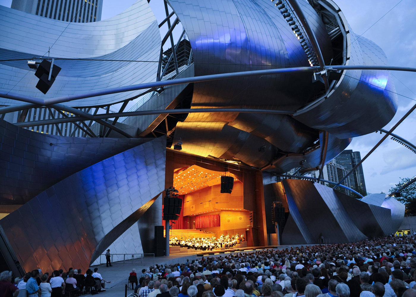 Millennium 공원에 위치한 파빌리온 건축물, 프랭크 게리가 건축했다. 뮤직 공연뿐만 아니라 오케스트라 공연도 하는 야외 공연장이다.