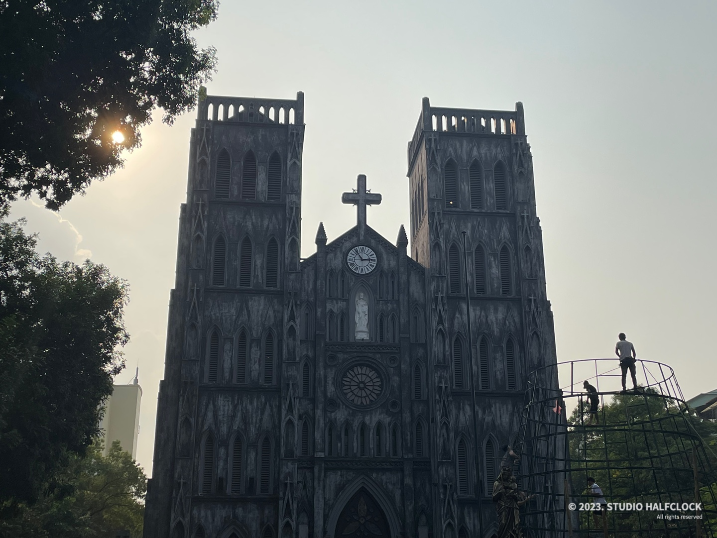 11월이라서 크리스마스 준비를 위해 트리를 만들고 있었어요. 12월 25일 전에 방문하면 크리스마스트리를 볼 수 있다고 합니다. 안전장비 없이 하던데 위험해 보였어요. 저는 트리 골격밖에 못 봤네요.. 아쉽다. 성당 바로 앞에서 정말 많은 관광객들이 사진을 찍고 있었습니다. 외국인 관광객들도 많았지만 베트남 현지인들도 많아 보였어요. 현지인들한테도 유명한 듯? 성당이 굉장히 높았고 외관이 생각보다 어두운 톤이었어요. 정말 가볼 만하니 하노이를 여행한다면 추천합니다.