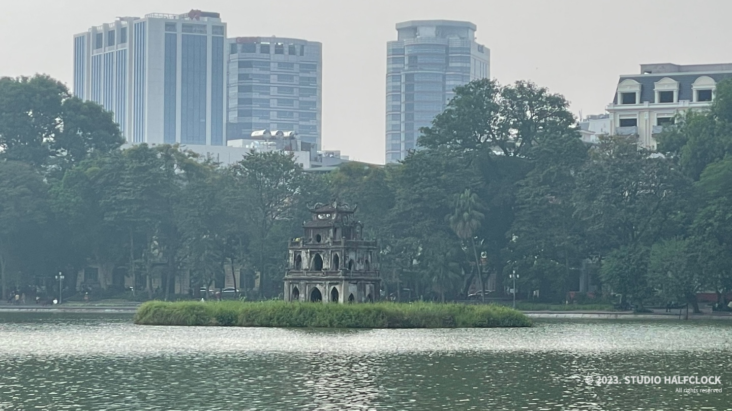 호안끼엠 호수는 정말 넓어서 한 바퀴를 다 돌려면 걸어서 40분 정도 걸릴 듯..?(제 기준입니다) 거기에 11월이지만 날씨가 꽤 더워서 땀 많이 흘리면서 돌아다녔습니다. 물 들고 다니세요.. 호암끼엠 호수 주변으로 공원처럼 꾸며져 있어서 사람들이 쉬기 좋게 만들어놓은 부분이 좋았습니다. 조금 걷다가 앉아서 쉬면서 호수뷰 보기. 근데 미세먼지가 심해서 쉬는 느낌이 없었음.. 다낭 갔다 온 사람이라면 하노이의 심각한 공기오염에 실망할 수도.. (본인이 실망함) 진짜로 미세먼지 때문에 계속 마스크 끼고 다녔습니다.
