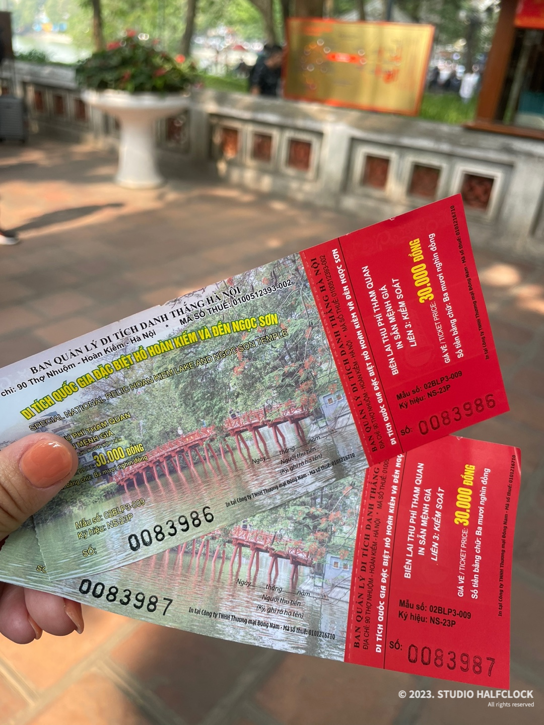 예쁘게 생긴 응옥썬사당의 티켓부스, 여기서 1인 30,000동 (성인기준)에 티켓을 구매하면 된다. 나는 어머니랑 둘이 가서 총 60,000동으로 티켓 2장을 샀다. 한국돈으로 3,000원밖에 안 하니 부담 없이 들어갈 수 있다. 베트남 현지사람들도 정말 많았고 다양한 국적의 사람들로 북적였다.
