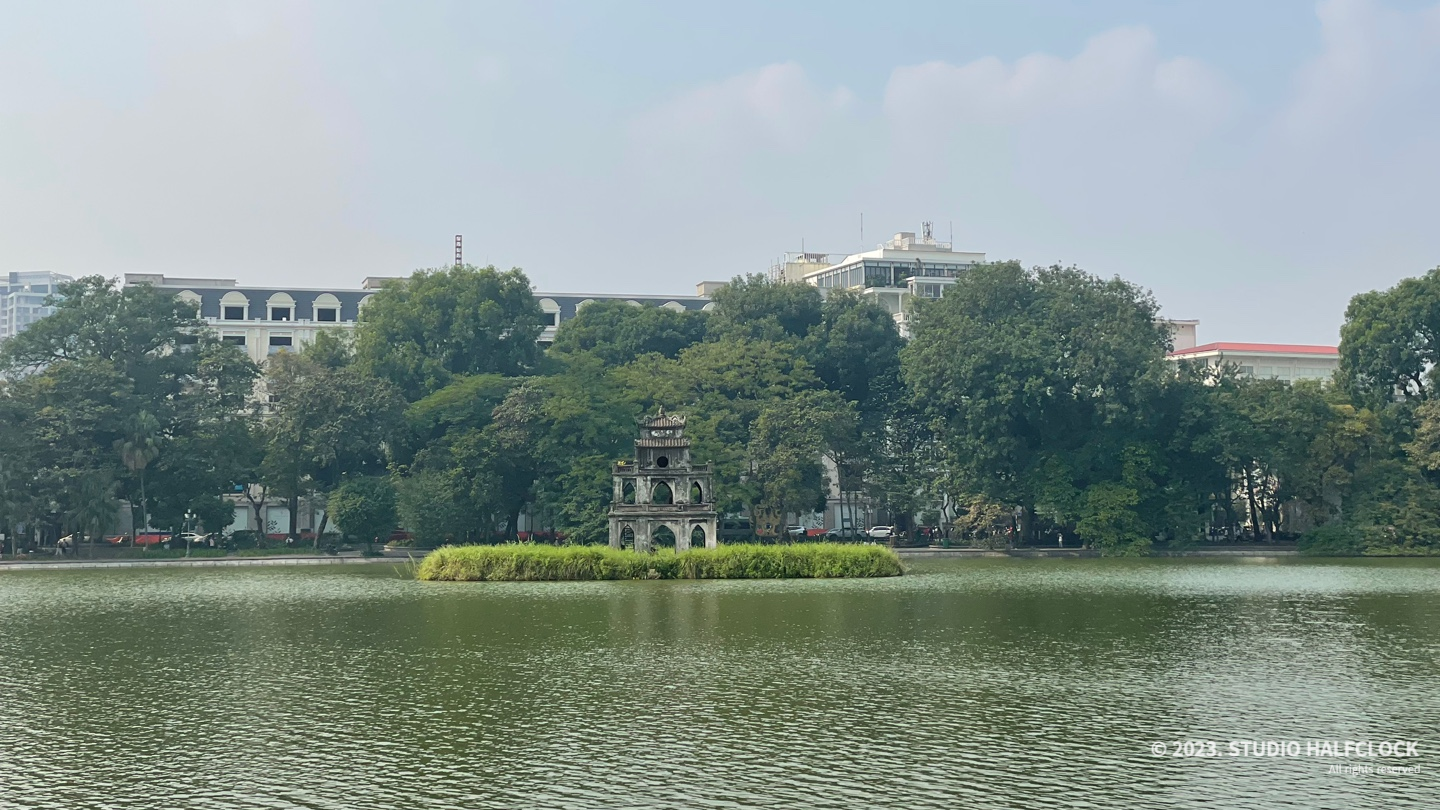 호안끼엠 호수는 정말 넓어서 한 바퀴를 다 돌려면 걸어서 40분 정도 걸릴 듯..?(제 기준입니다) 거기에 11월이지만 날씨가 꽤 더워서 땀 많이 흘리면서 돌아다녔습니다. 물 들고 다니세요.. 호암끼엠 호수 주변으로 공원처럼 꾸며져 있어서 사람들이 쉬기 좋게 만들어놓은 부분이 좋았습니다. 조금 걷다가 앉아서 쉬면서 호수뷰 보기. 근데 미세먼지가 심해서 쉬는 느낌이 없었음.. 다낭 갔다 온 사람이라면 하노이의 심각한 공기오염에 실망할 수도.. (본인이 실망함) 진짜로 미세먼지 때문에 계속 마스크 끼고 다녔습니다.
