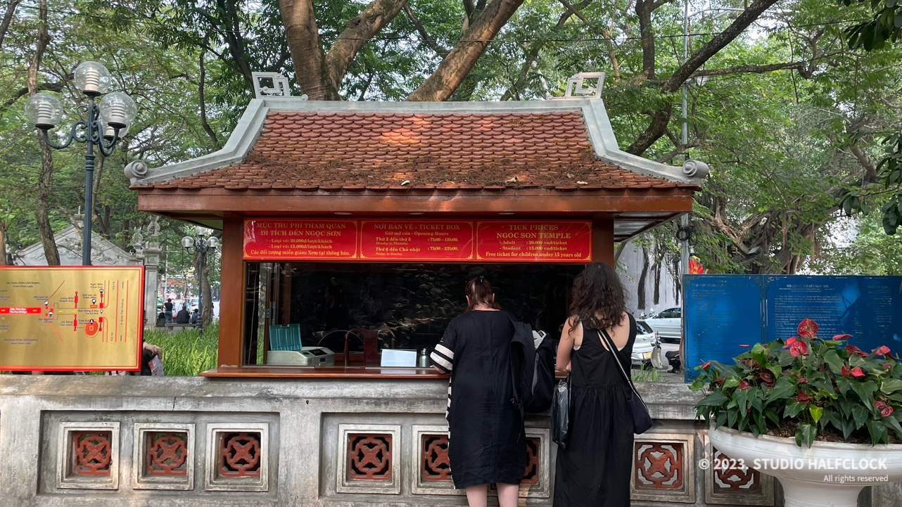 예쁘게 생긴 응옥썬사당의 티켓부스, 여기서 1인 30,000동 (성인기준)에 티켓을 구매하면 된다. 나는 어머니랑 둘이 가서 총 60,000동으로 티켓 2장을 샀다. 한국돈으로 3,000원밖에 안 하니 부담 없이 들어갈 수 있다. 베트남 현지사람들도 정말 많았고 다양한 국적의 사람들로 북적였다.