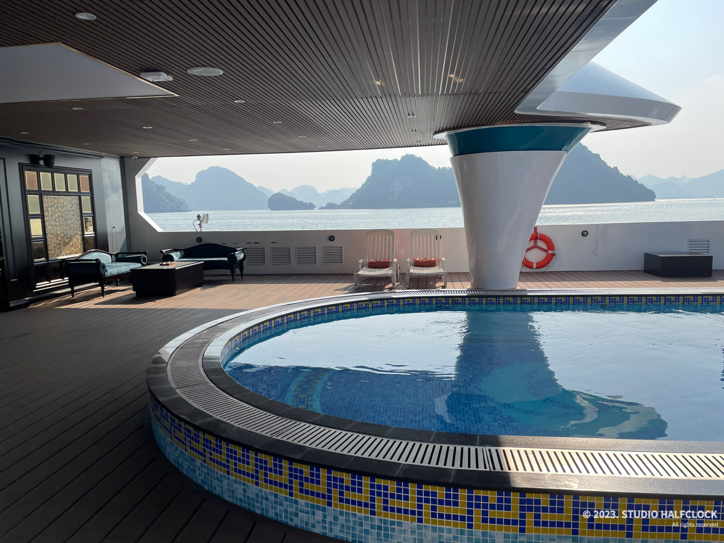 베트남 하롱베이의 6성급 크루즈, 캐서린 크루즈의 부대시설(수영장, 사우나, 마사지, 노래방) 후기글입니다. 2023년 10월에 첫 운항을 한 캐서린 크루즈의 룸과 식사 후기는 아래글에 있습니다. 어머니랑 둘이 여행하면서 너무나 만족했던 크루즈입니다. 하롱베이에 다른 크루즈들도 많지만 최근에 생긴 크루즈로 모든 시설이 깨끗했고 사람들도 많이 붐비지 않아 좋았습니다.