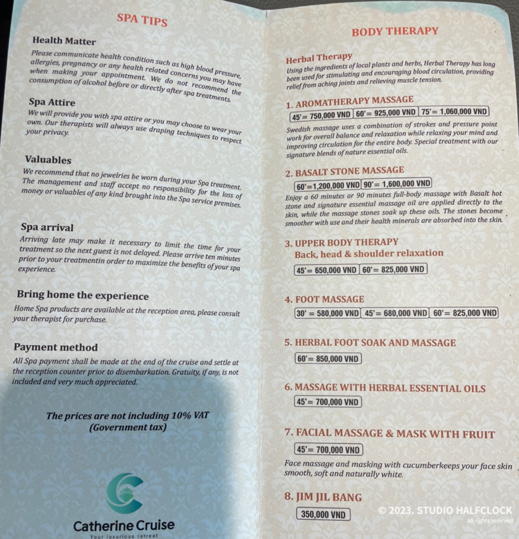 베트남 하롱베이의 6성급 크루즈, 캐서린 크루즈의 부대시설(수영장, 사우나, 마사지, 노래방) 후기글입니다. 2023년 10월에 첫 운항을 한 캐서린 크루즈의 룸과 식사 후기는 아래글에 있습니다. 어머니랑 둘이 여행하면서 너무나 만족했던 크루즈입니다. 하롱베이에 다른 크루즈들도 많지만 최근에 생긴 크루즈로 모든 시설이 깨끗했고 사람들도 많이 붐비지 않아 좋았습니다.