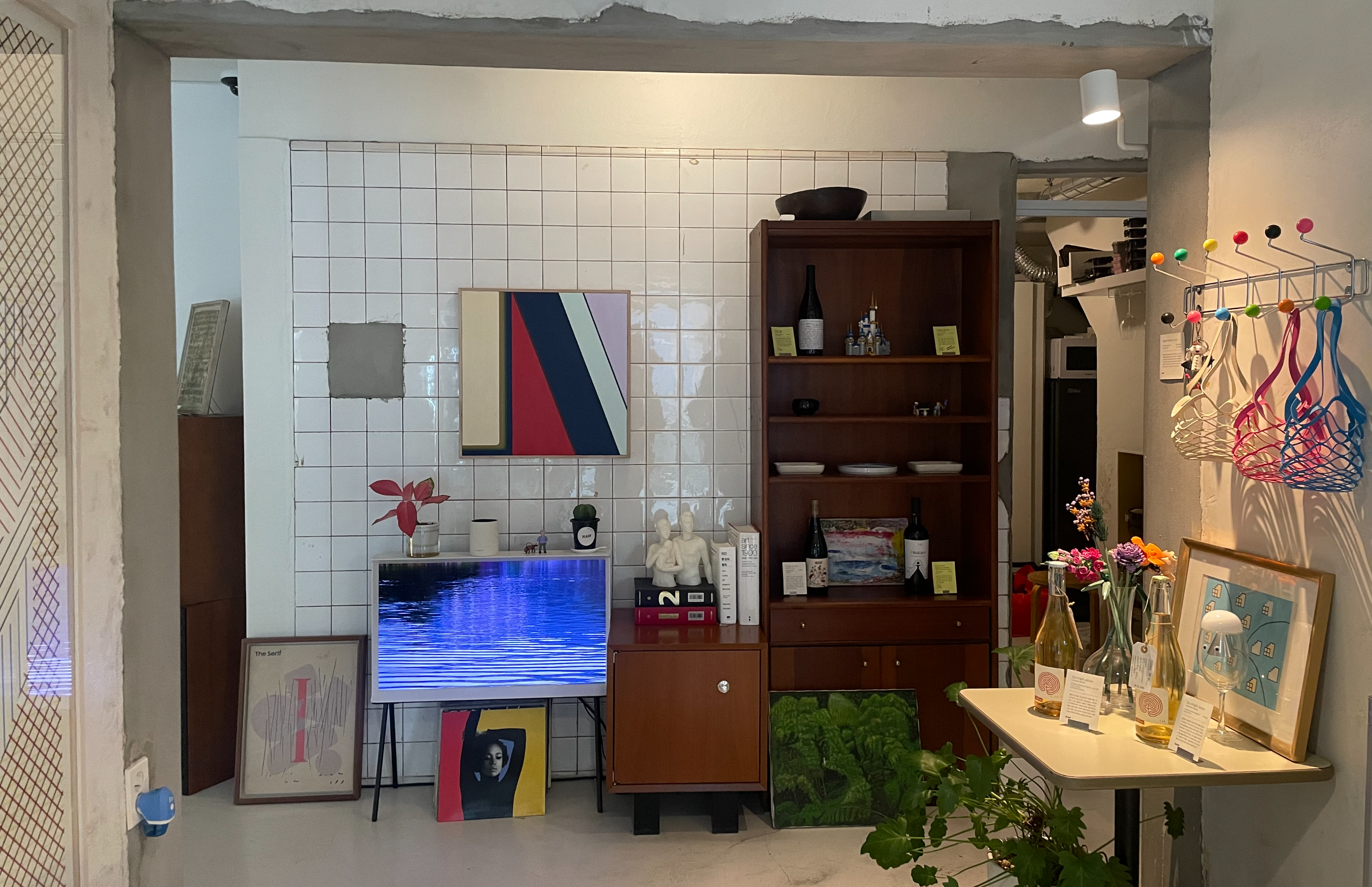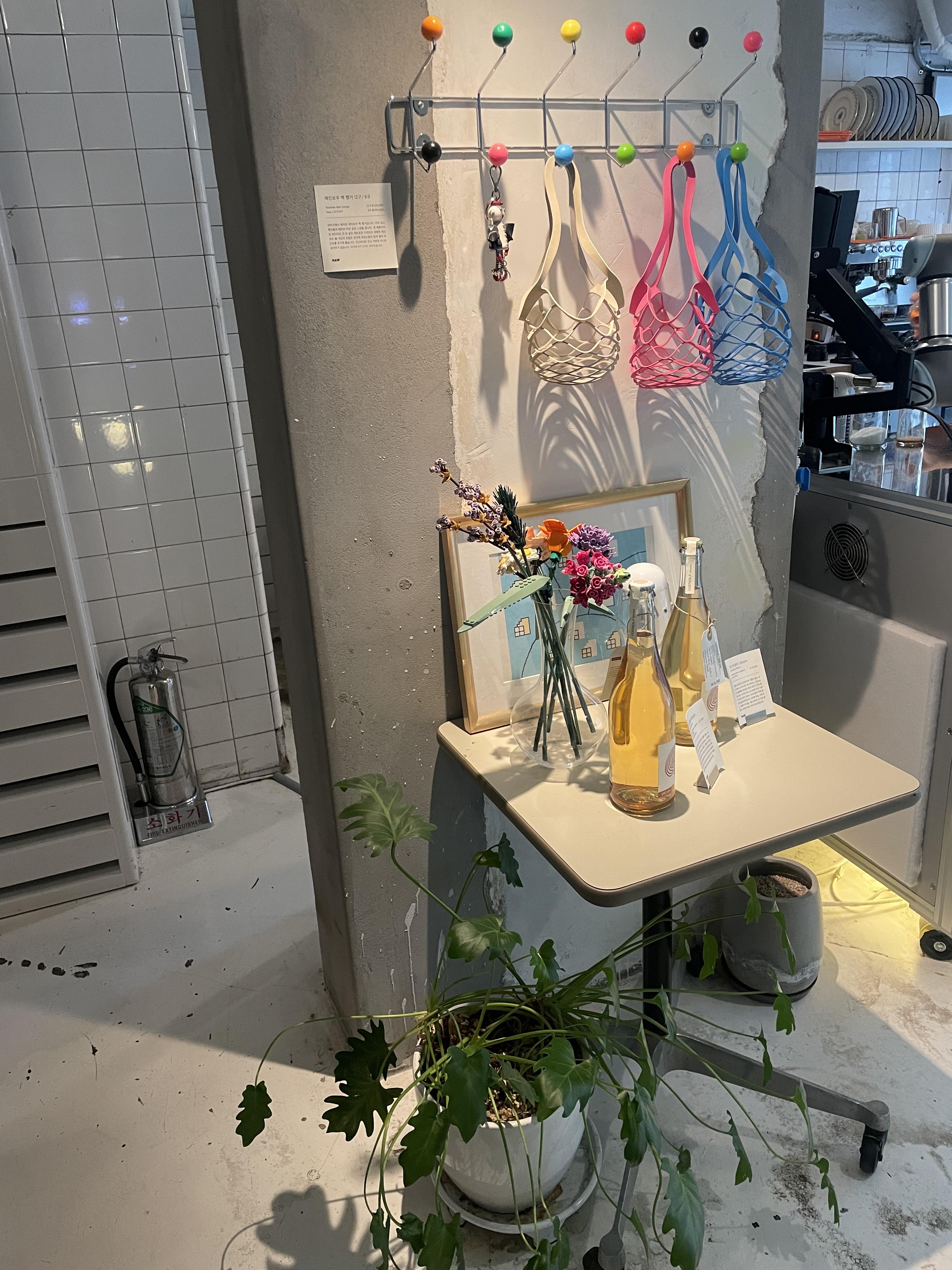 내부에는 편집샵처럼 이것저것 구경할 수 있게 되어있어서 잠깐 둘러보기에 좋은듯. 예쁜 소품들과 특히 와인 커버?같은게 있는데 특이하고 컬러풀해서 눈길이 갔다. 와인 많으면 하나 살만 할듯..