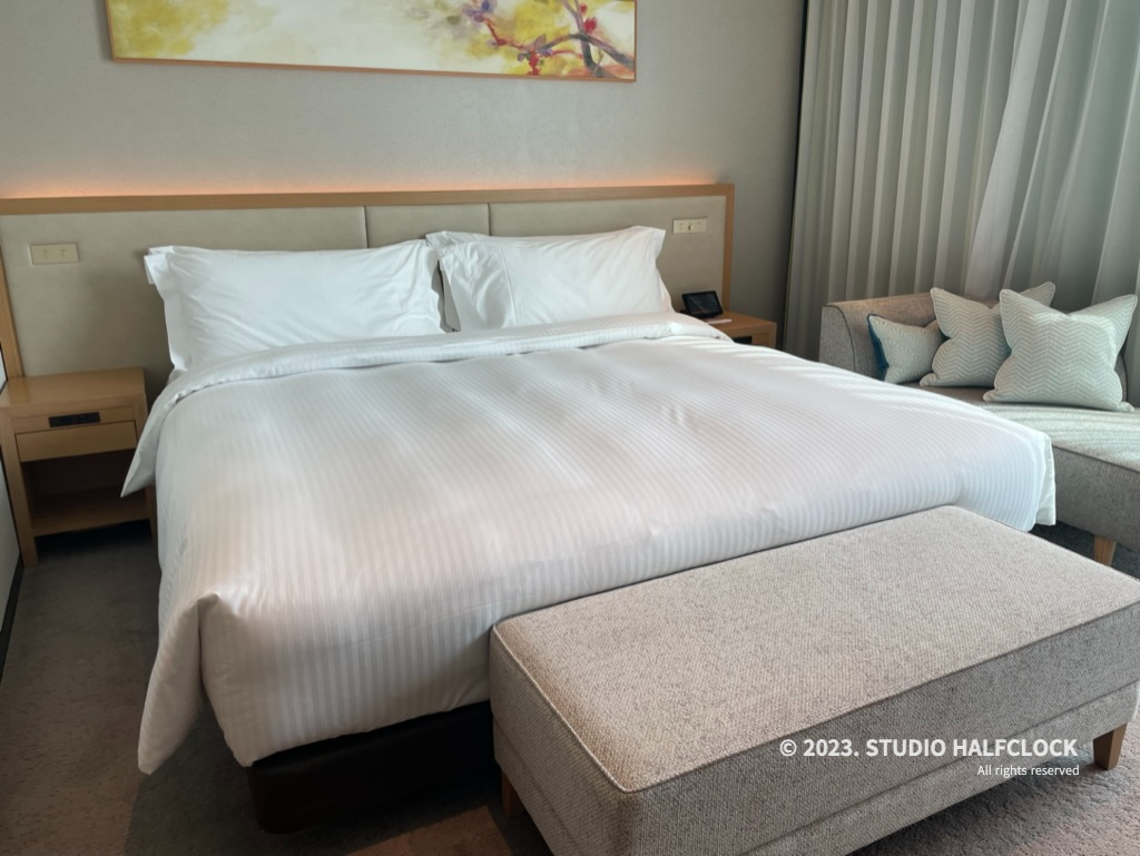 킹베드 깔끔하게 정리되어 있고 옆에 유에스비 충전기가 양쪽으로 있어서 좋았다.
