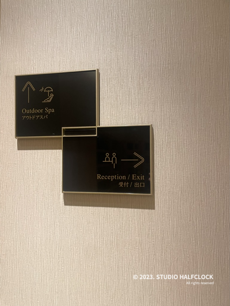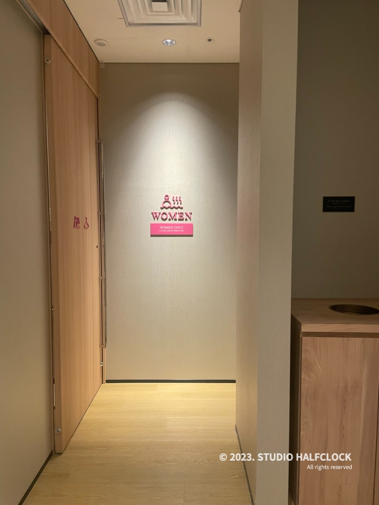 실내스파를 한다면 안으로 들어가야 하고 야외스파를 이용한다면 외부 신발로 갈아 신고 오른쪽 문으로 가야 한다.