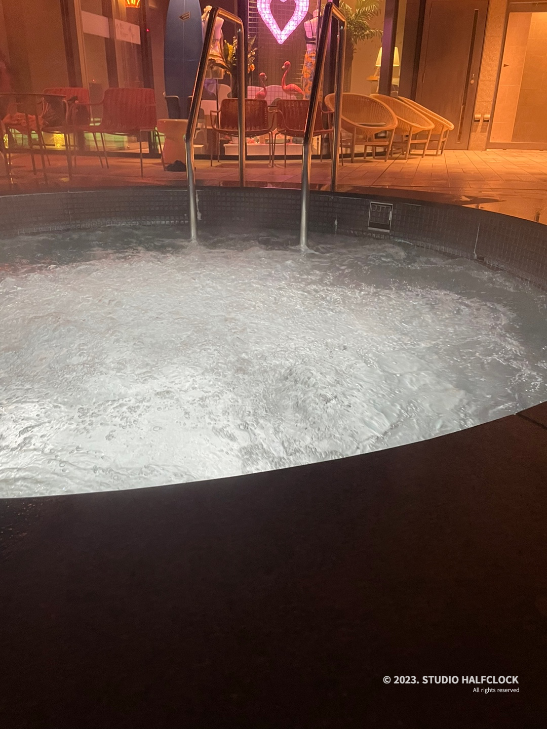 그렇게 몸에 있는 문신을 열심히 가리고 야외 스파로 향했다.