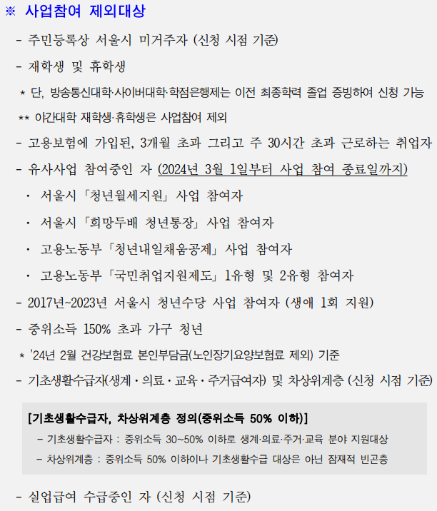 - 단기근로 청년(주 30시간 이하 또는 3개월 이하 단기근로자) 신청가능