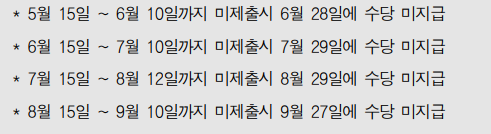 - 자기활동기록서 미제출시 해당 월 수당 지급 중지(예외/연장 없음)