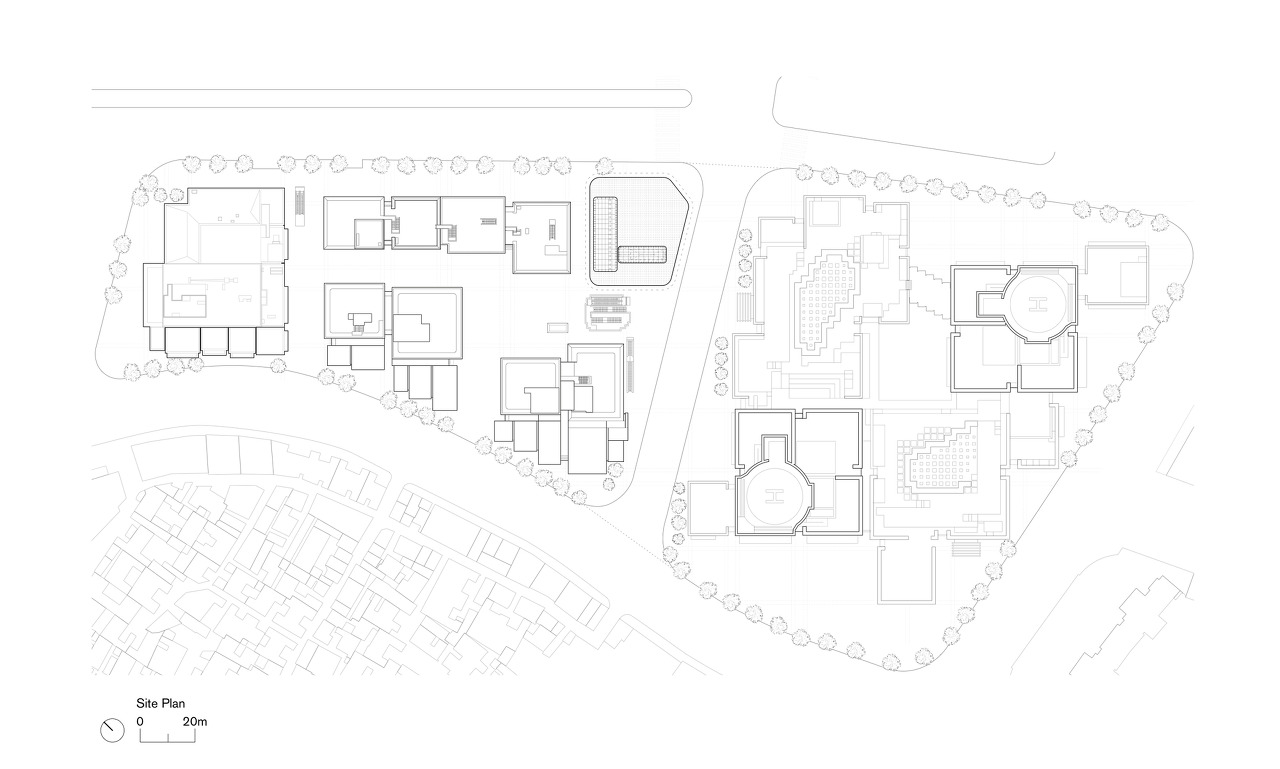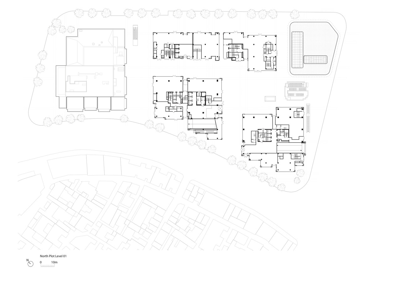 8개의 빌딩으로 이루어져 있고 사무실과 호텔, 문화센터 및 다양한 소매 공간을 결합하고 있으며 모두 조경된 공공 광장을 중심으로 배치되어 있다.