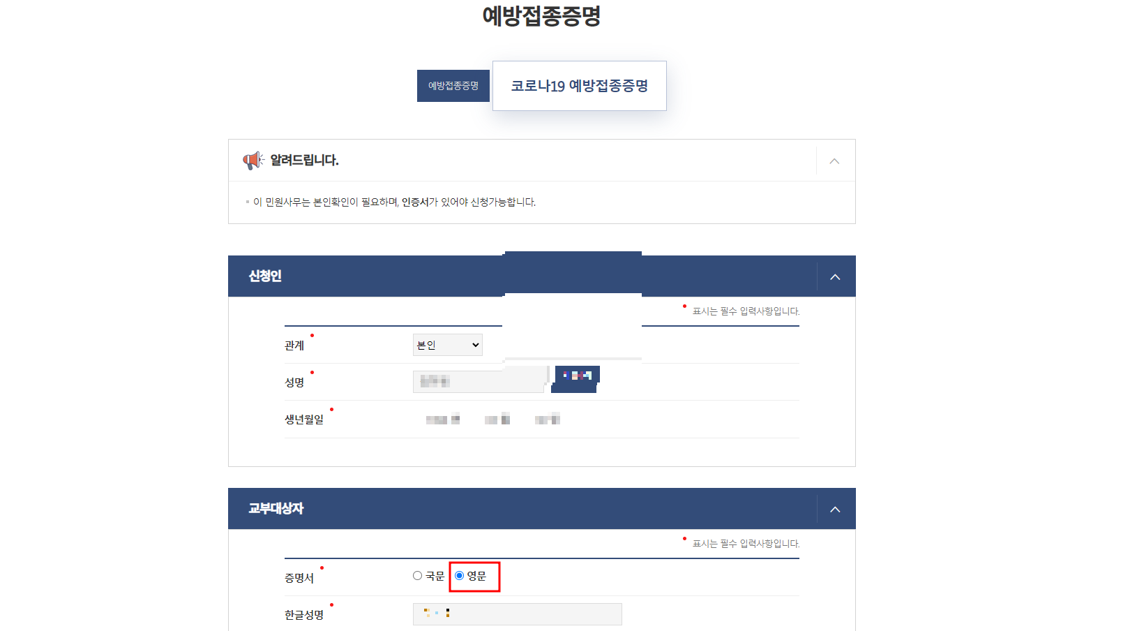 3. 백신영문접종증명서 발급
