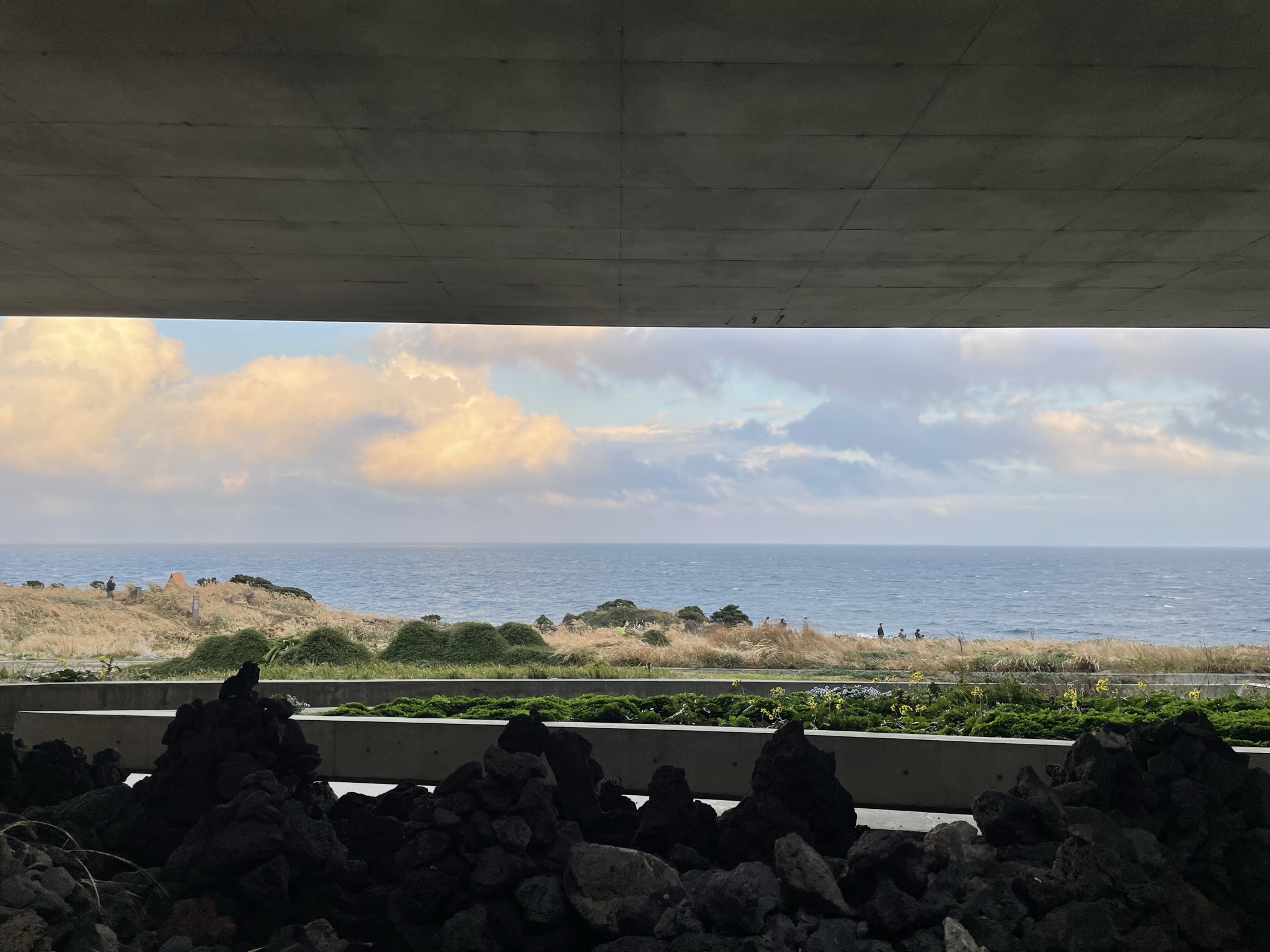 카페와 스튜디오, 레스토랑이 있는 건물이다. 이 건물도 안도다다오가 건축했고 굉장히 간결한 형태를 보여준다. 건축물은 양쪽으로 바다를 향해 뻗어 나가는 느낌을 준다. 섭지코지에서 여기까지 왔다면 꽤 걸었기에 카페에서 잠시 쉬다 가기 좋다. 점심에 카페에서 흑돼지 햄버거를 판다고 하는데, 저녁에는 팔지 않아서 먹어보진 못했지만 맛있을 것 같다.
